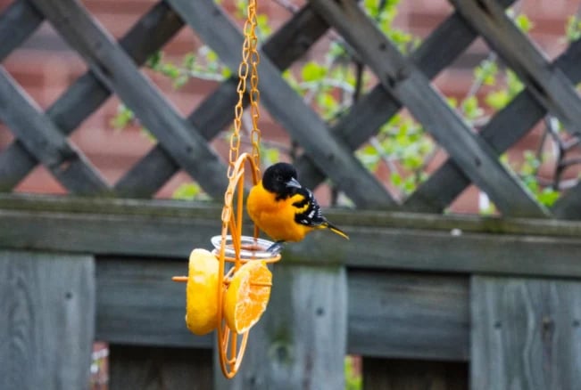 - AN ENTERTAINING ADDITION TO YOUR WINDOW -Â Hang this oriole feeder outside any window or on your porch or back patio, and then sit back and watch a whole new group of birds come by to visit. Grab your bird-watching book and binoculars because you'll see species of fruit-feeding birds that you've never seen before.